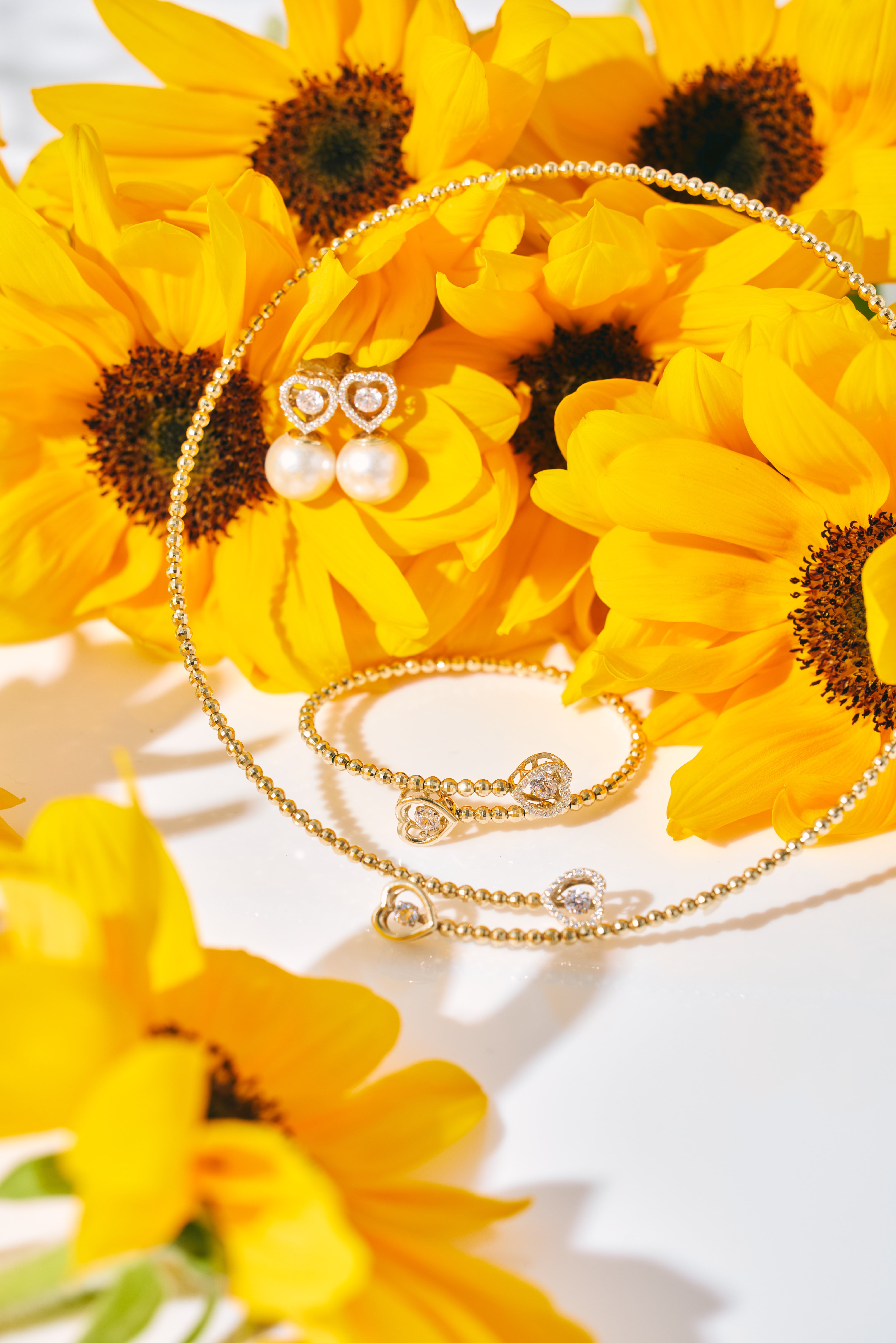 動くたびにきらめく中央のストーンと、柔らかく揺れるパールが