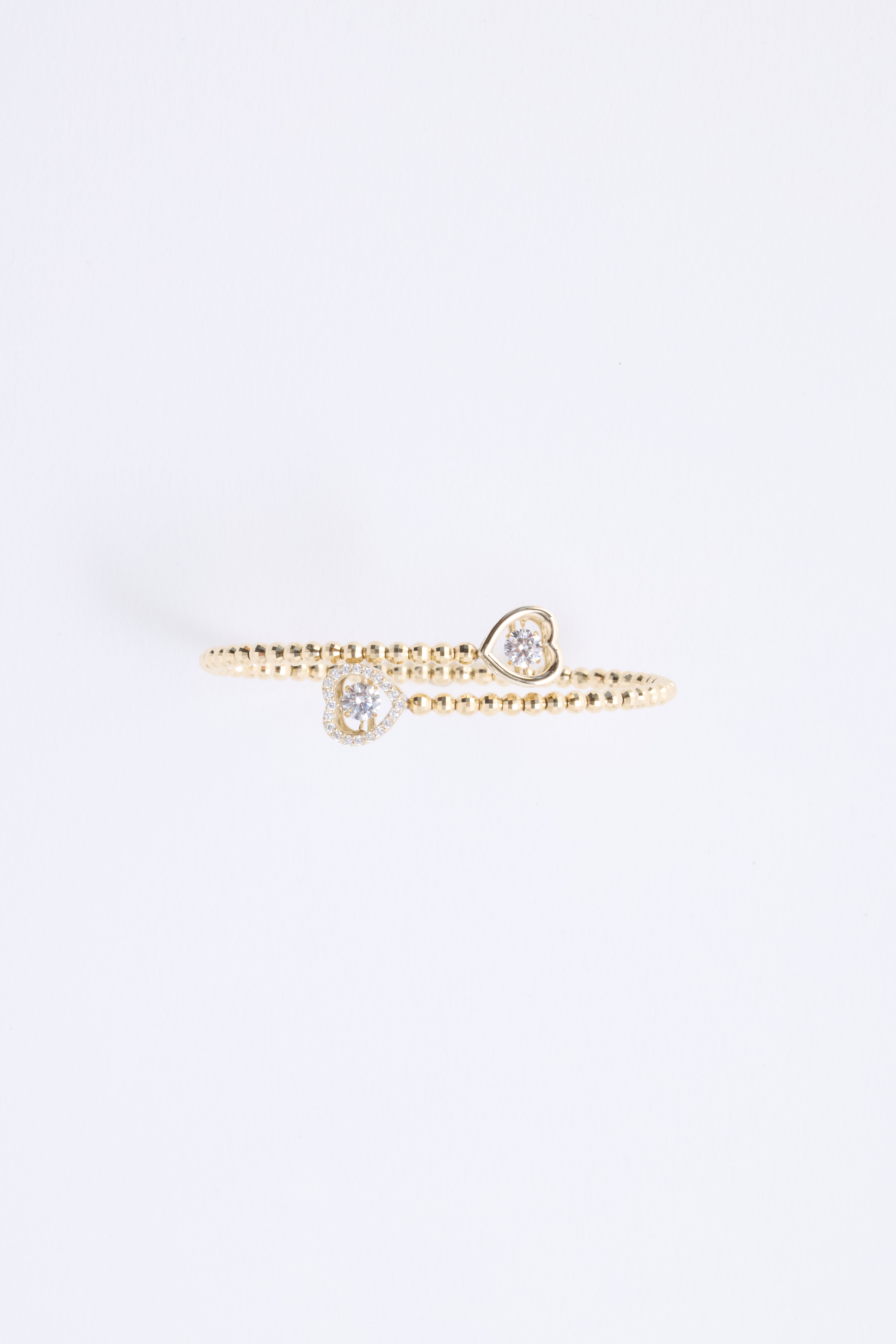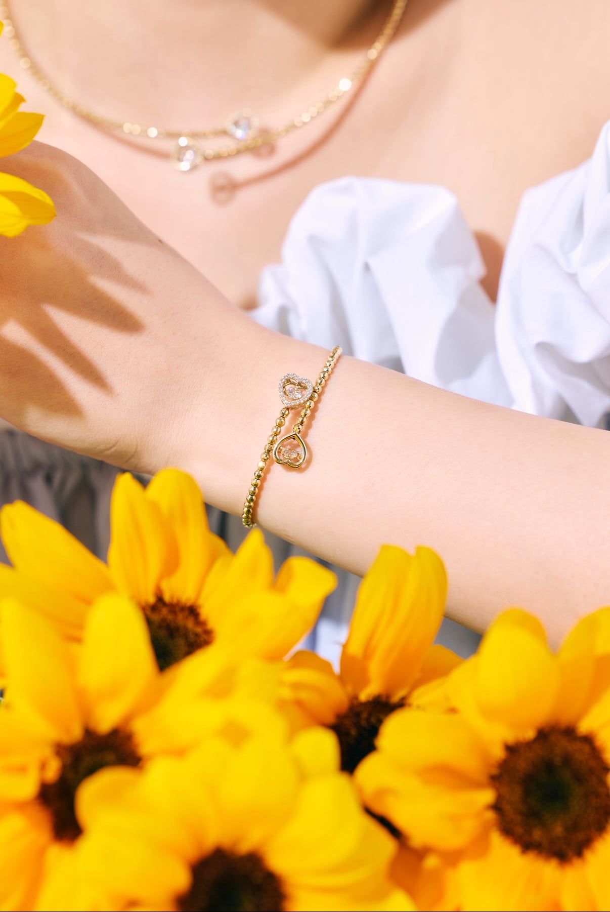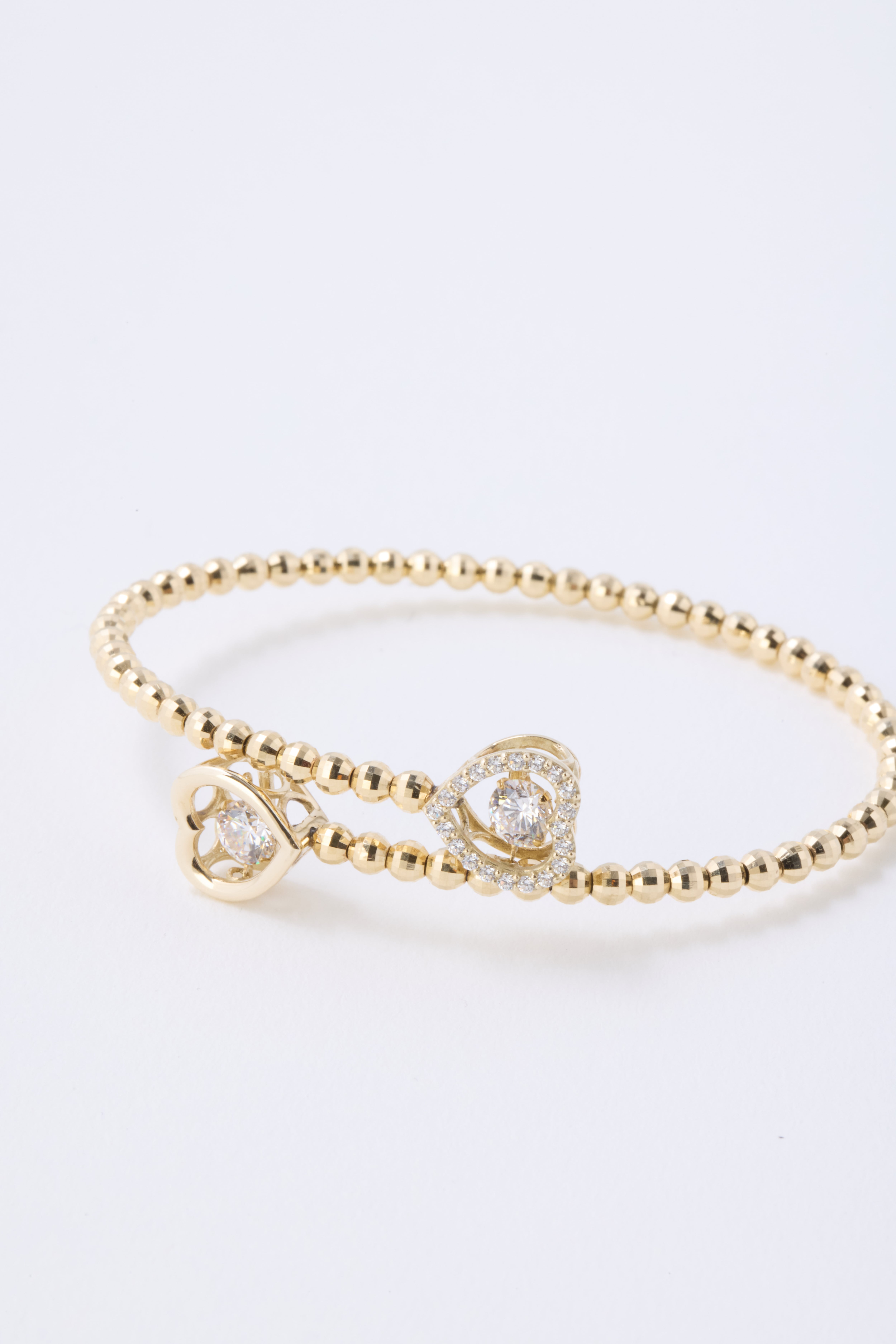 ころんと丸みのある形状記憶チェーンが、立体的なハートモチーフとともに手元にリズムを生み出します。