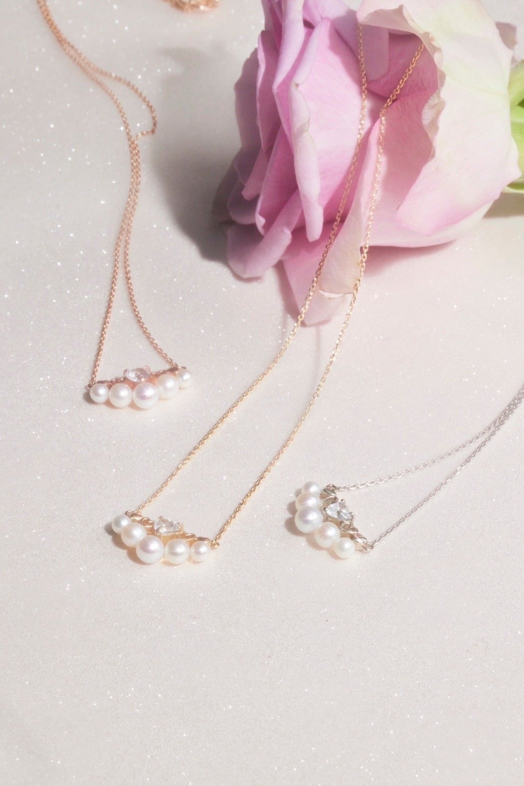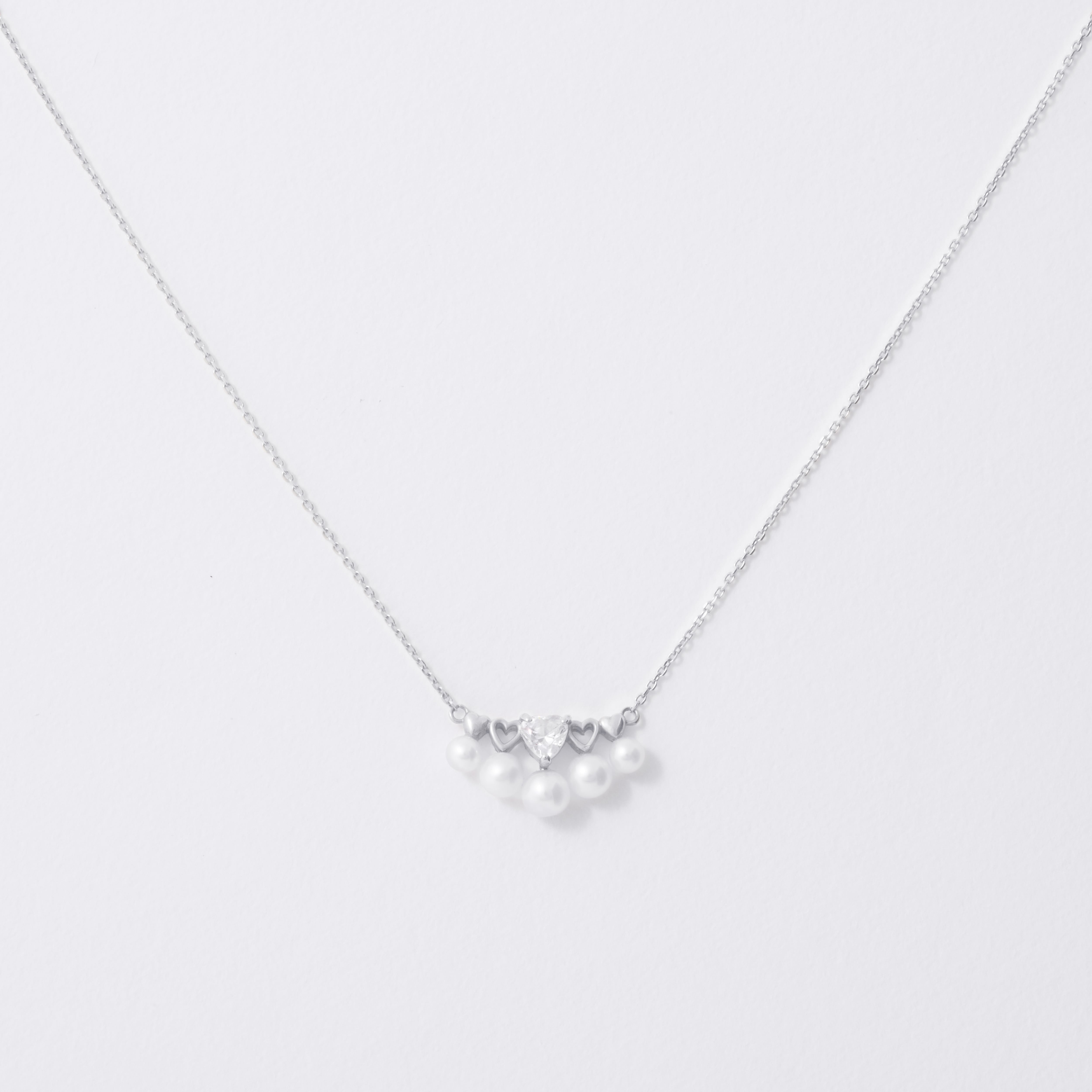 ハートとパールを重ねたデザイン性と存在感のあるネックレスに仕上げております。