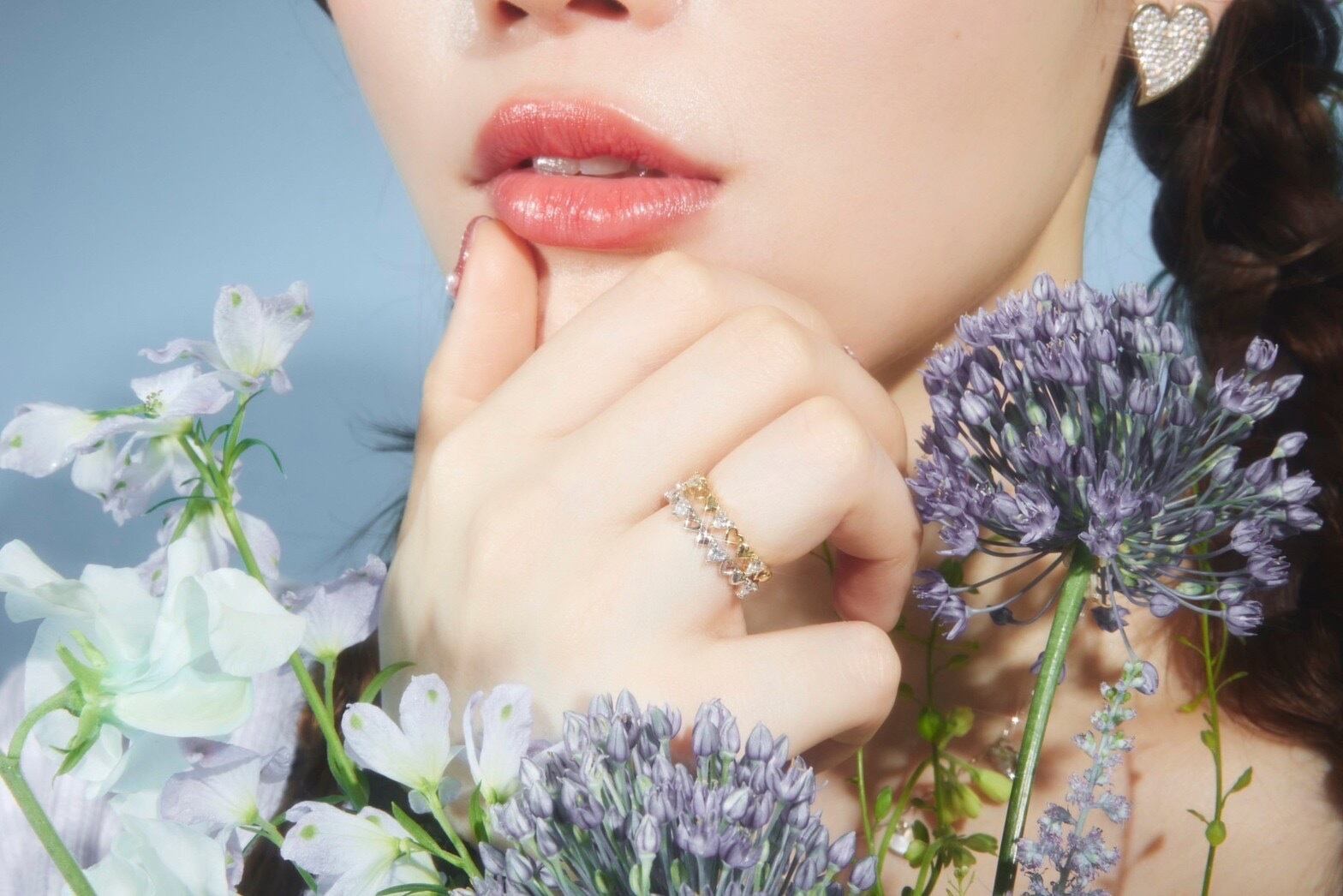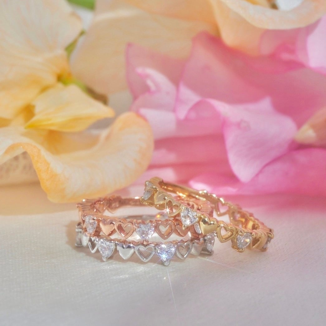 ku ku.から出る惚レ惚レリングと掛け合わせても、可愛さが深まります。重ねることでハートの数が22粒になり、奇跡の前兆といわれる数字へと意味を変えてくれます。
