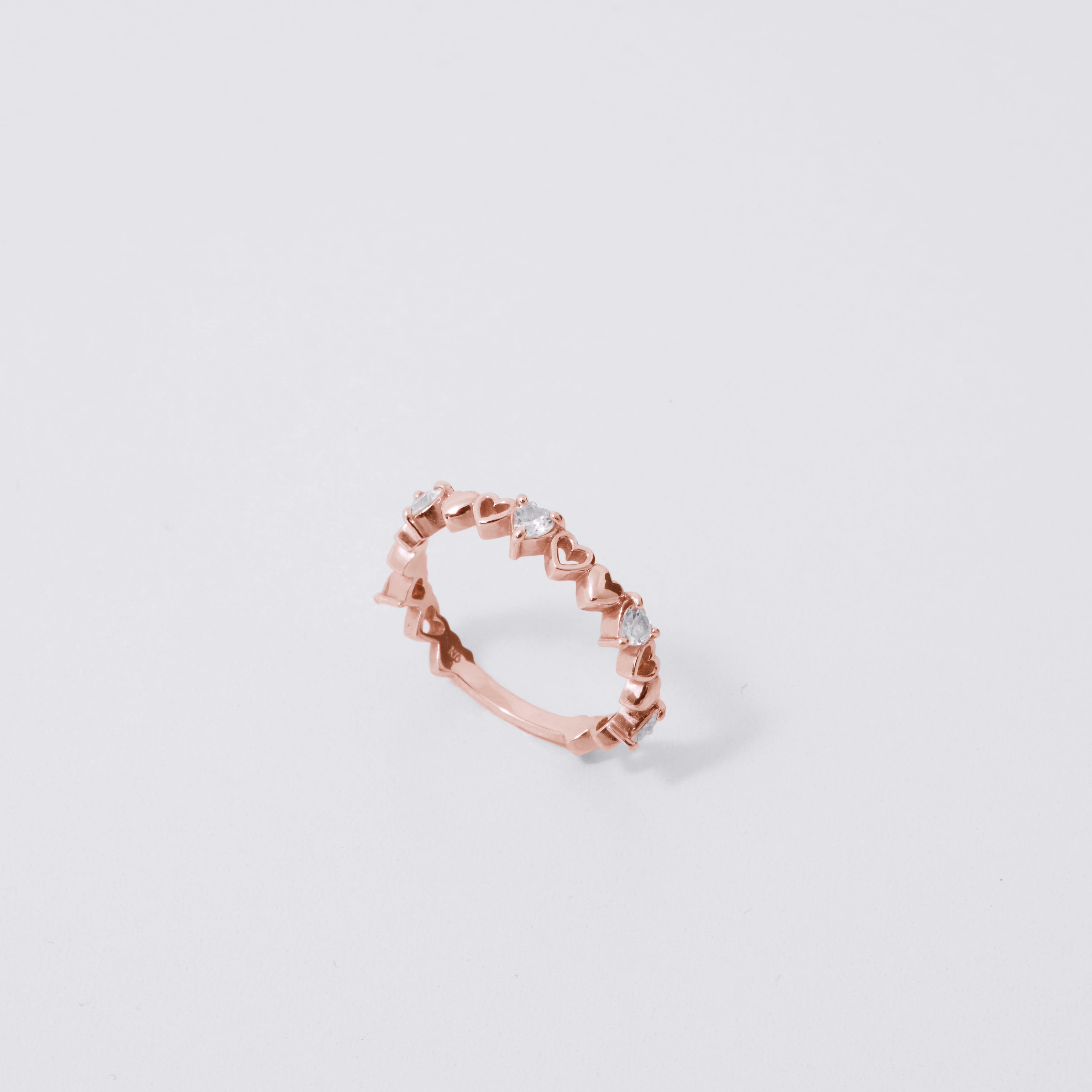小さなハートのモチーフを並べたリング。